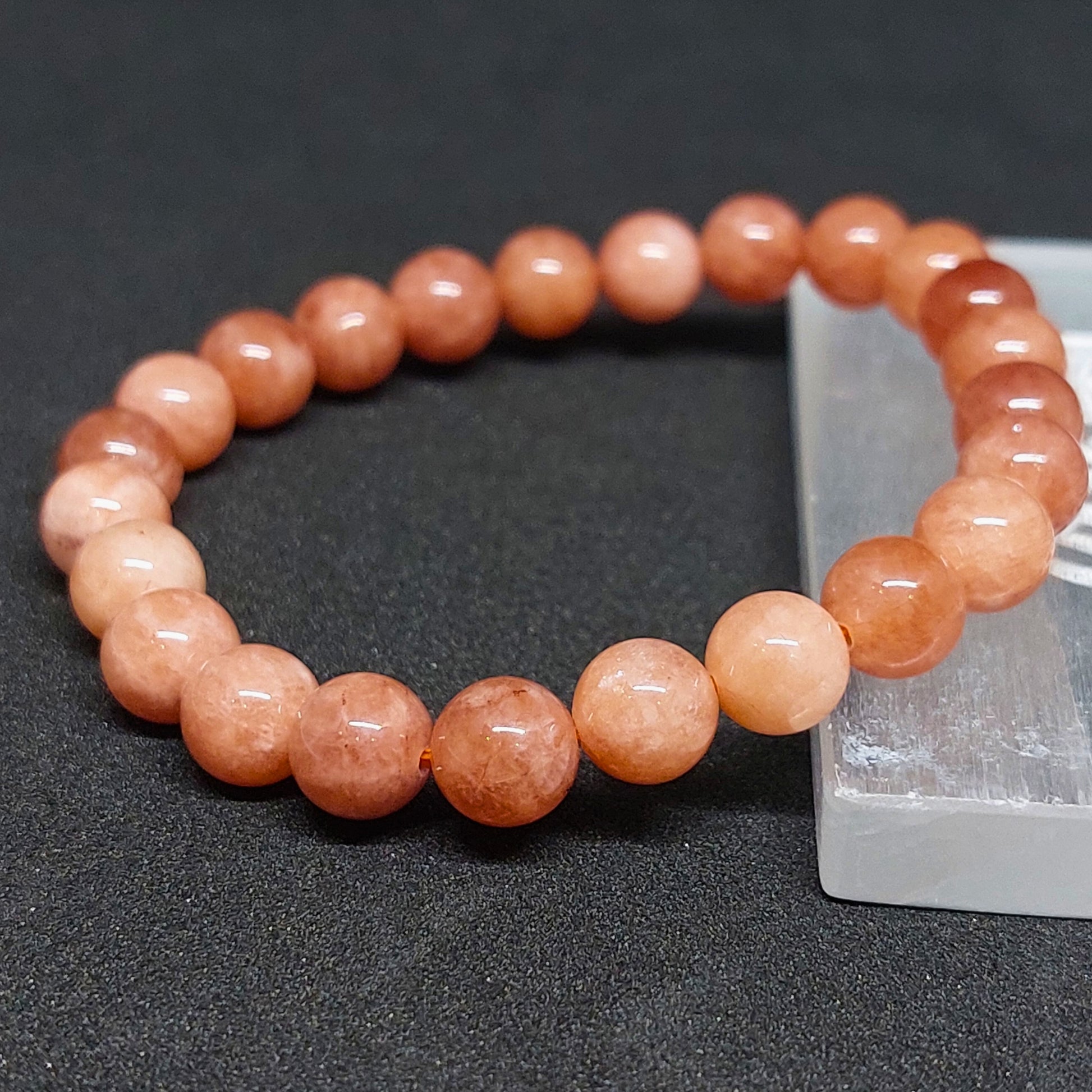 Cleanse your Sunstone Bracelet every 15 days. To recharge, place it under the full moon overnight or on a Selenite plate to restore its natural energy and positivity.